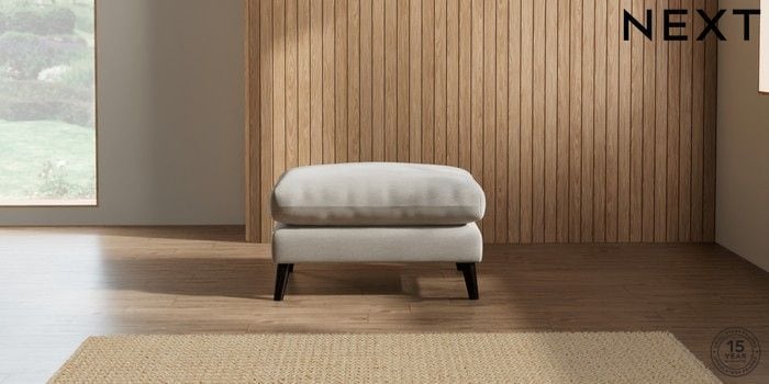 6.12.1 Buy Orlo Relaxed Sit Footstool Ripple Chenille Light Natural Retro Tapered - Dark from the Next UK online shop Click here to use our accessible website