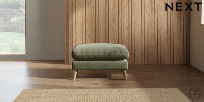 6.12.1 Buy Orlo Relaxed Sit Footstool Ripple Chenille Mid Moss Green Retro Tapered - Light from the Next UK online shop Click here to use our accessible website