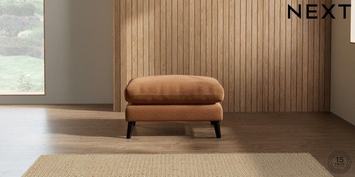6.12.1 Buy Orlo Relaxed Sit Footstool Ripple Chenille Mid Rust Brown Retro Tapered - Dark from the Next UK online shop Click here to use our accessible website