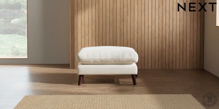 6.12.1 Buy Orlo Relaxed Sit Footstool Ripple Chenille Oyster Retro Tapered - Dark Brown from the Next UK online shop Click here to use our accessible website