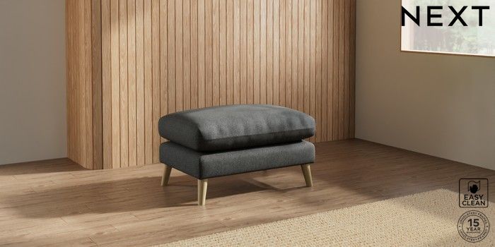 6.12.1 Buy Orlo Relaxed Sit Footstool Tweedy Blend Easy Clean Charcoal Grey Retro Tapered - Light from the Next UK online shop Click here to use our accessible website
