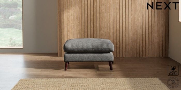 6.12.1 Buy Orlo Relaxed Sit Footstool Tweedy Blend Easy Clean Dark Grey Retro Tapered - Dark Brown from the Next UK online shop Click here to use our accessible website