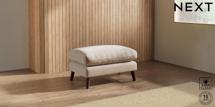 6.12.1 Buy Orlo Relaxed Sit Footstool Tweedy Blend Easy Clean Light Dove Natural Retro Tapered - Dark Brown from the Next UK online shop Click here to use our accessible website