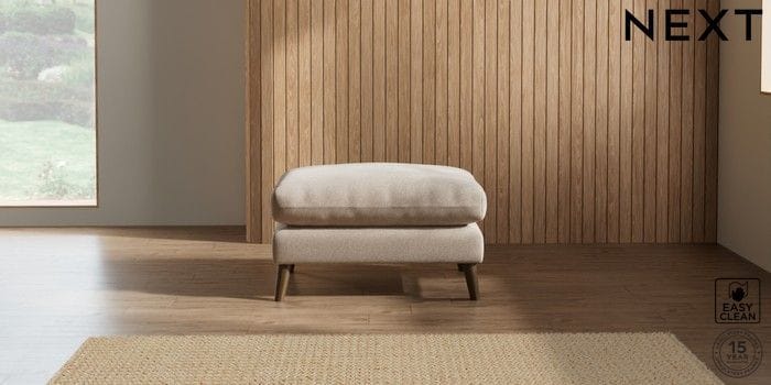 6.12.1 Buy Orlo Relaxed Sit Footstool Tweedy Blend Easy Clean Light Dove Natural Retro Tapered - Mid from the Next UK online shop Click here to use our accessible website