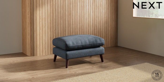 6.12.1 Buy Orlo Relaxed Sit Footstool Tweedy Chenille Navy Blue Retro Tapered - Dark Brown from the Next UK online shop Click here to use our accessible website