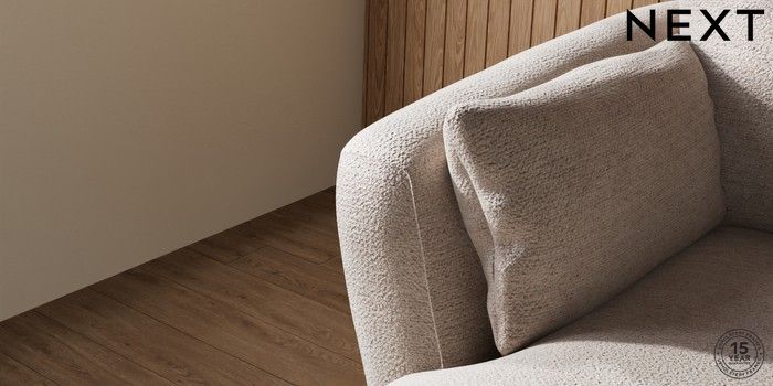 6.12.1 Buy Orlo Relaxed Sit Medium Sofa Chaise - Left Hand Boucle Chenille Light Natural Retro Tapered - Dark Brown from the Next UK online shop Click here to use our accessible website