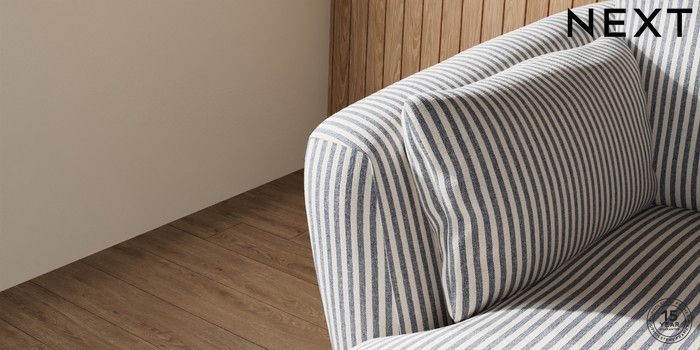 7.3.1 Buy Orlo Relaxed Sit Medium Sofa Chaise - Left Hand Chenille Stripe Slate Blue Retro Tapered - Dark Brown from the Next UK online shop Click here to use our accessible website