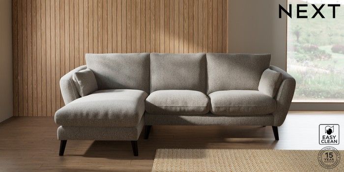 6.12.1 Buy Orlo Relaxed Sit Medium Sofa Chaise - Left Hand Chunky Boucle Easy Clean Dove Retro Tapered - Dark from the Next UK online shop Click here to use our accessible website