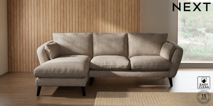 6.12.1 Buy Orlo Relaxed Sit Medium Sofa Chaise - Left Hand Chunky Boucle Easy Clean Mid Natural Retro Tapered - Dark from the Next UK online shop Click here to use our accessible website
