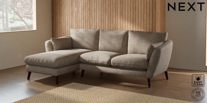 6.12.1 Buy Orlo Relaxed Sit Medium Sofa Chaise - Left Hand Chunky Boucle Easy Clean Mid Natural Retro Tapered - Dark Brown from the Next UK online shop Click here to use our accessible website