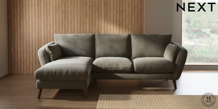 7.0.3 Buy Orlo Relaxed Sit Medium Sofa Chaise - Left Hand Chunky Marl Light Olive Green Retro Tapered - Mid from the Next UK online shop Click here to use our accessible website