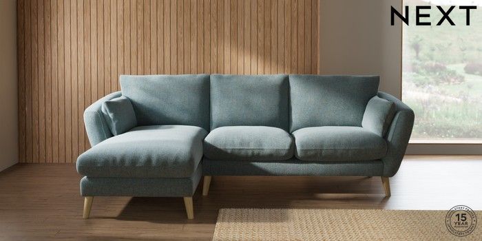 6.12.1 Buy Orlo Relaxed Sit Medium Sofa Chaise - Left Hand Chunky Marl Mid Blue Retro Tapered - Light from the Next UK online shop Click here to use our accessible website