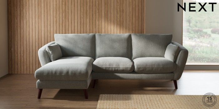 6.12.1 Buy Orlo Relaxed Sit Medium Sofa Chaise - Left Hand Chunky Texture Dove Retro Tapered - Dark Brown from the Next UK online shop Click here to use our accessible website