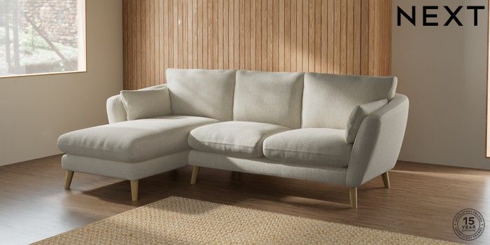 6.12.1 Buy Orlo Relaxed Sit Medium Sofa Chaise - Left Hand Chunky Texture Oyster Retro Tapered - Light from the Next UK online shop Click here to use our accessible website