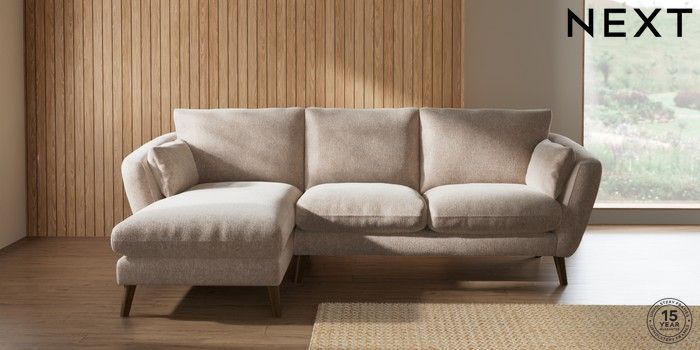 6.12.1 Buy Orlo Relaxed Sit Medium Sofa Chaise - Left Hand Cotswold Chenille Light Natural Retro Tapered - Mid from the Next UK online shop Click here to use our accessible website