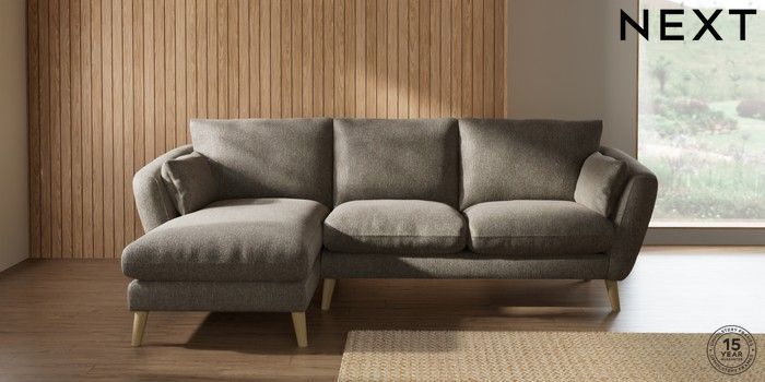 7.0.3 Buy Orlo Relaxed Sit Medium Sofa Chaise - Left Hand Cotswold Chenille Mid Mink Brown Retro Tapered - Light from the Next UK online shop Click here to use our accessible website