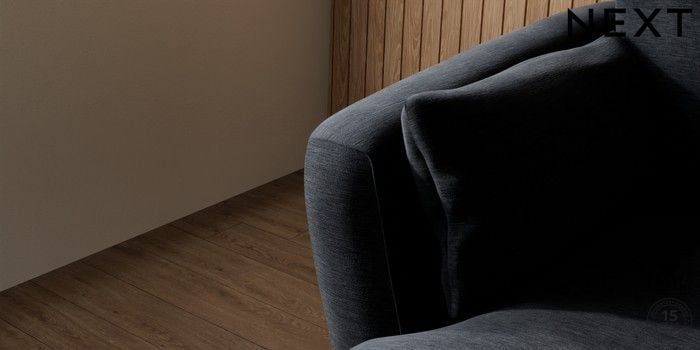 6.12.1 Buy Orlo Relaxed Sit Medium Sofa Chaise - Left Hand Fine Chenille Easy Clean Black Retro Tapered - Dark from the Next UK online shop Click here to use our accessible website