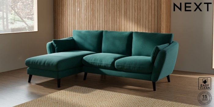 6.12.1 Buy Orlo Relaxed Sit Medium Sofa Chaise - Left Hand Fine Chenille Easy Clean Dark Juniper Green Retro Tapered - Dark from the Next UK online shop Click here to use our accessible website