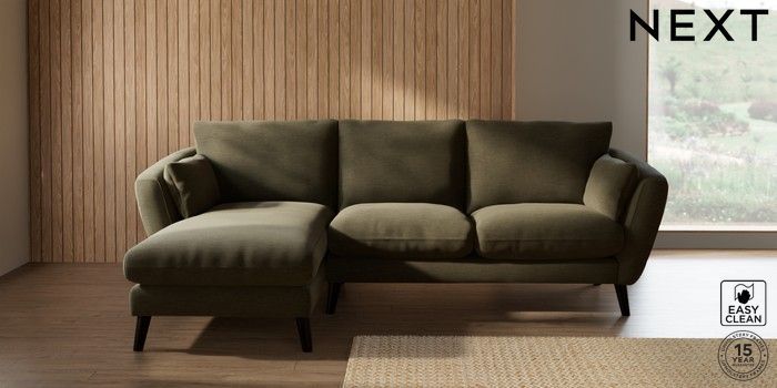 6.12.1 Buy Orlo Relaxed Sit Medium Sofa Chaise - Left Hand Fine Chenille Easy Clean Dark Moss Green Retro Tapered - Dark from the Next UK online shop Click here to use our accessible website