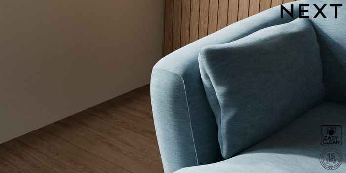 6.12.1 Buy Orlo Relaxed Sit Medium Sofa Chaise - Left Hand Fine Chenille Easy Clean Mid Blue Retro Tapered - Dark Brown from the Next UK online shop Click here to use our accessible website