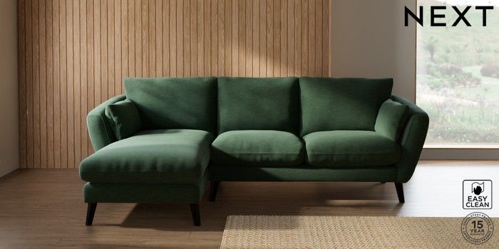 6.12.1 Buy Orlo Relaxed Sit Medium Sofa Chaise - Left Hand Fine Chenille Easy Clean Mid Khaki Green Retro Tapered - Dark from the Next UK online shop Click here to use our accessible website