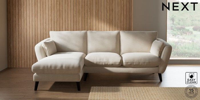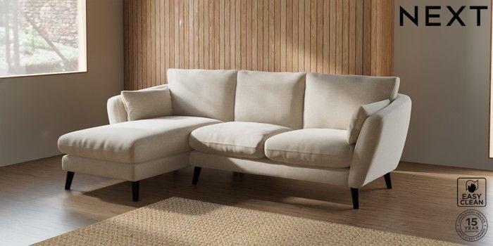 6.12.1 Buy Orlo Relaxed Sit Medium Sofa Chaise - Left Hand Fine Chenille Easy Clean Oyster Retro Tapered - Dark from the Next UK online shop Click here to use our accessible website