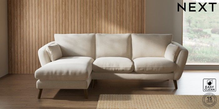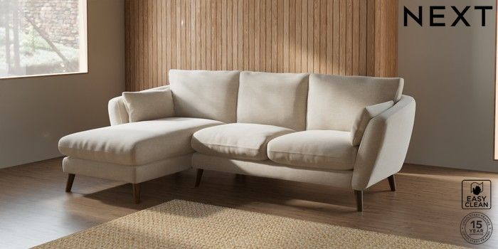6.12.1 Buy Orlo Relaxed Sit Medium Sofa Chaise - Left Hand Fine Chenille Easy Clean Oyster Retro Tapered - Mid from the Next UK online shop Click here to use our accessible website