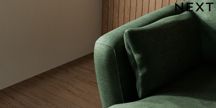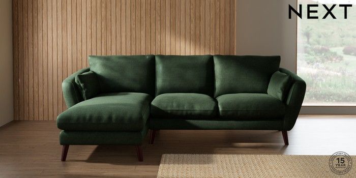 6.12.1 Buy Orlo Relaxed Sit Medium Sofa Chaise - Left Hand Luxe Chenille Dark Green Retro Tapered - Dark Brown from the Next UK online shop Click here to use our accessible website