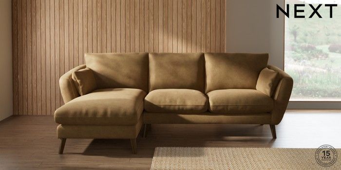 7.0.3 Buy Orlo Relaxed Sit Medium Sofa Chaise - Left Hand Luxe Chenille Honey Yellow Retro Tapered - Mid from the Next UK online shop Click here to use our accessible website