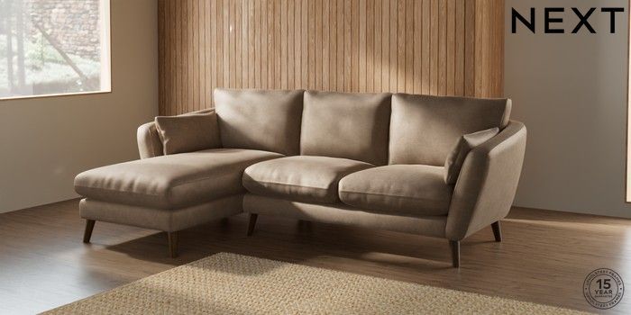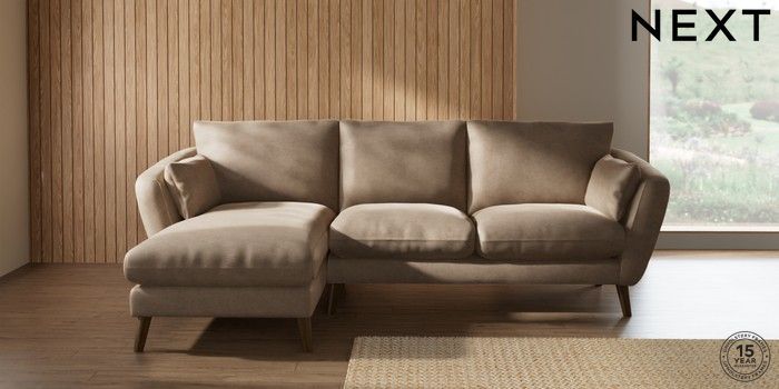 6.12.1 Buy Orlo Relaxed Sit Medium Sofa Chaise - Left Hand Luxe Chenille Mid Camel Beige Retro Tapered - Mid from the Next UK online shop Click here to use our accessible website