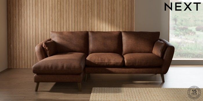 6.12.1 Buy Orlo Relaxed Sit Medium Sofa Chaise - Left Hand Monza Faux Leather Easy Clean Chestnut Brown Retro Tapered - Mid from the Next UK online shop Click here to use our accessible website