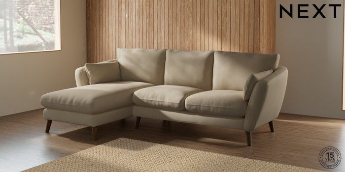 6.12.1 Buy Orlo Relaxed Sit Medium Sofa Chaise - Left Hand Natural Mix Light Natural Retro Tapered - Mid from the Next UK online shop Click here to use our accessible website