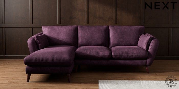 6.12.1 Buy Orlo Relaxed Sit Medium Sofa Chaise - Left Hand Plush Chenille Dark Plum Purple Retro Tapered - Dark Brown from the Next UK online shop Click here to use our accessible website