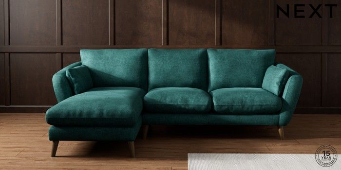 6.12.1 Buy Orlo Relaxed Sit Medium Sofa Chaise - Left Hand Plush Chenille Dark Teal Green Retro Tapered - Mid from the Next UK online shop Click here to use our accessible website