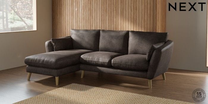 6.12.1 Buy Orlo Relaxed Sit Medium Sofa Chaise - Left Hand Plush Chenille Mink Brown Retro Tapered - Light from the Next UK online shop Click here to use our accessible website