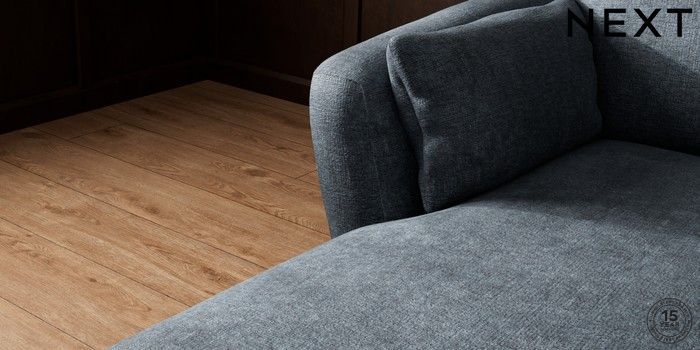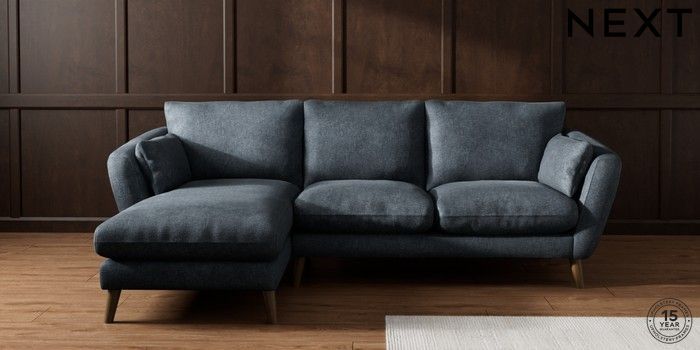 6.12.1 Buy Orlo Relaxed Sit Medium Sofa Chaise - Left Hand Plush Chenille Slate Blue Retro Tapered - Mid from the Next UK online shop Click here to use our accessible website