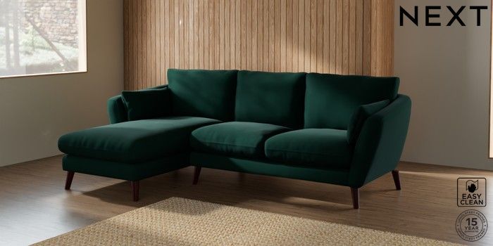 6.12.1 Buy Orlo Relaxed Sit Medium Sofa Chaise - Left Hand Plush Velvet Easy Clean Bottle Green Retro Tapered - Dark Brown from the Next UK online shop Click here to use our accessible website