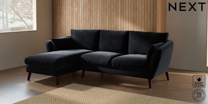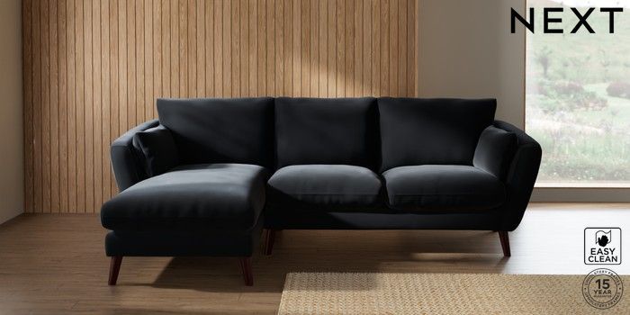 6.12.1 Buy Orlo Relaxed Sit Medium Sofa Chaise - Left Hand Plush Velvet Easy Clean Charcoal Grey Retro Tapered - Dark Brown from the Next UK online shop Click here to use our accessible website
