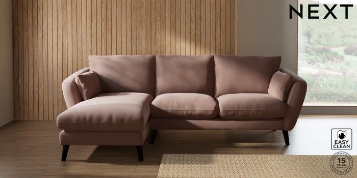 6.12.1 Buy Orlo Relaxed Sit Medium Sofa Chaise - Left Hand Plush Velvet Easy Clean Mid Natural Retro Tapered - Dark from the Next UK online shop Click here to use our accessible website