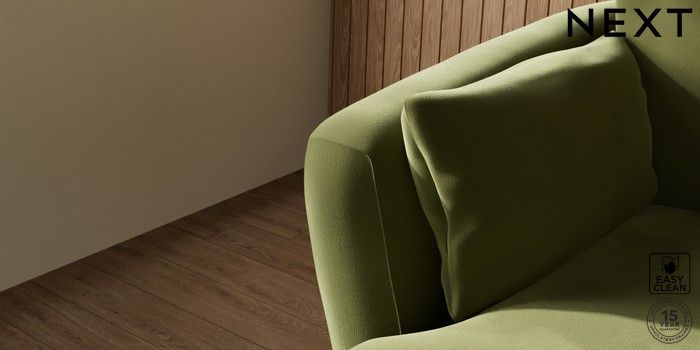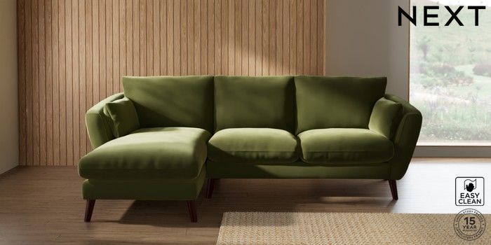 6.12.1 Buy Orlo Relaxed Sit Medium Sofa Chaise - Left Hand Plush Velvet Easy Clean Mid Olive Green Retro Tapered - Dark Brown from the Next UK online shop Click here to use our accessible website