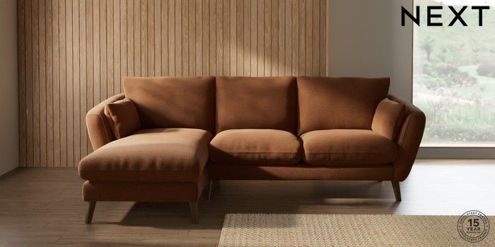 7.0.3 Buy Orlo Relaxed Sit Medium Sofa Chaise - Left Hand Ripple Chenille Mid Rust Brown Retro Tapered - Mid from the Next UK online shop Click here to use our accessible website