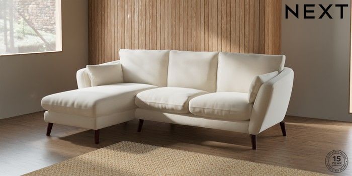 6.12.1 Buy Orlo Relaxed Sit Medium Sofa Chaise - Left Hand Ripple Chenille Oyster Retro Tapered - Dark Brown from the Next UK online shop Click here to use our accessible website