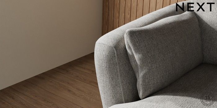 6.12.1 Buy Orlo Relaxed Sit Medium Sofa Chaise - Left Hand Tweedy Chenille Mid Grey Retro Tapered - Dark Brown from the Next UK online shop Click here to use our accessible website