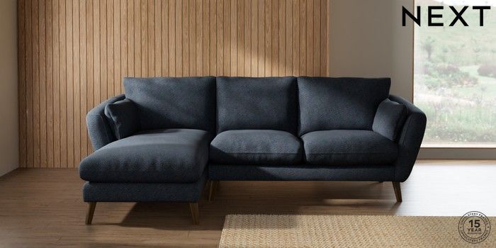 6.12.1 Buy Orlo Relaxed Sit Medium Sofa Chaise - Left Hand Tweedy Chenille Navy Blue Retro Tapered - Mid from the Next UK online shop Click here to use our accessible website