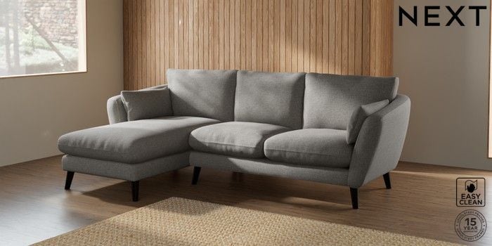 6.12.1 Buy Orlo Relaxed Sit Medium Sofa Chaise - Left Hand Woven Chenille Easy Clean Light Grey Retro Tapered - Dark from the Next UK online shop Click here to use our accessible website