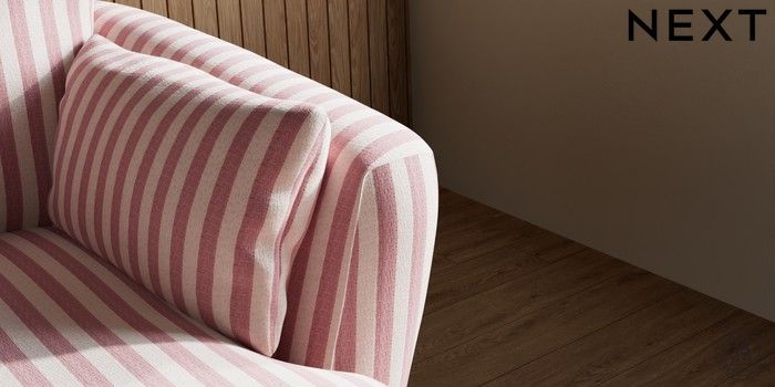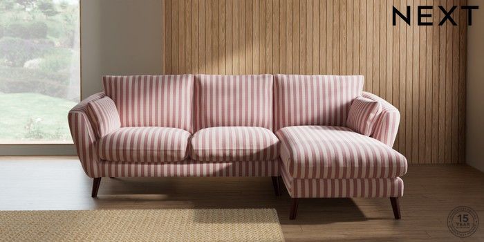 7.3.1 Buy Orlo Relaxed Sit Medium Sofa Chaise - Right Hand Bold Chenille Stripe Dark Pink Retro Tapered - Dark Brown from the Next UK online shop Click here to use our accessible website