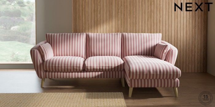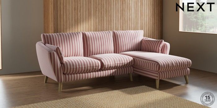7.3.1 Buy Orlo Relaxed Sit Medium Sofa Chaise - Right Hand Bold Chenille Stripe Dark Pink Retro Tapered - Light from the Next UK online shop Click here to use our accessible website