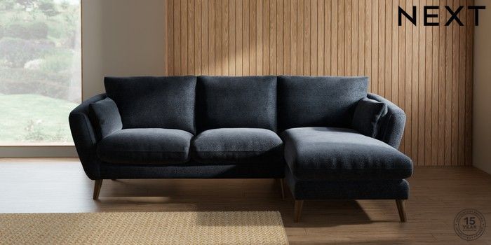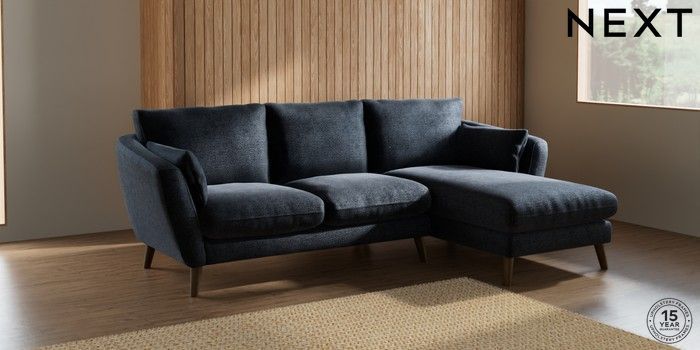 6.12.1 Buy Orlo Relaxed Sit Medium Sofa Chaise - Right Hand Boucle Chenille Dark Slate Blue Retro Tapered - Mid from the Next UK online shop Click here to use our accessible website
