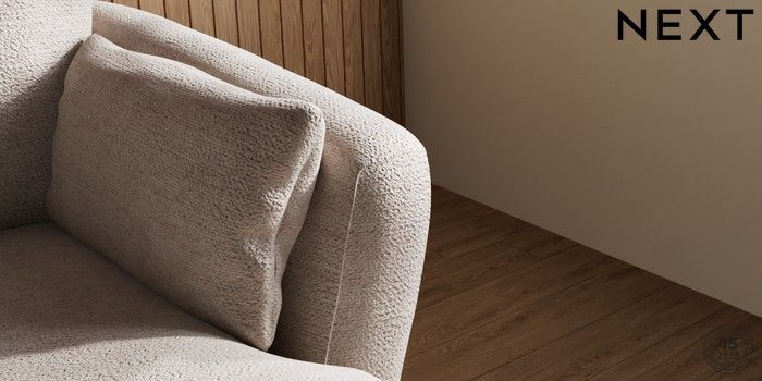 6.12.1 Buy Orlo Relaxed Sit Medium Sofa Chaise - Right Hand Boucle Chenille Light Natural Retro Tapered - Light from the Next UK online shop Click here to use our accessible website