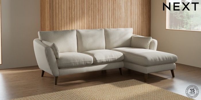 7.3.1 Buy Orlo Relaxed Sit Medium Sofa Chaise - Right Hand Chenille Stripe Moss Green Retro Tapered - Mid from the Next UK online shop Click here to use our accessible website